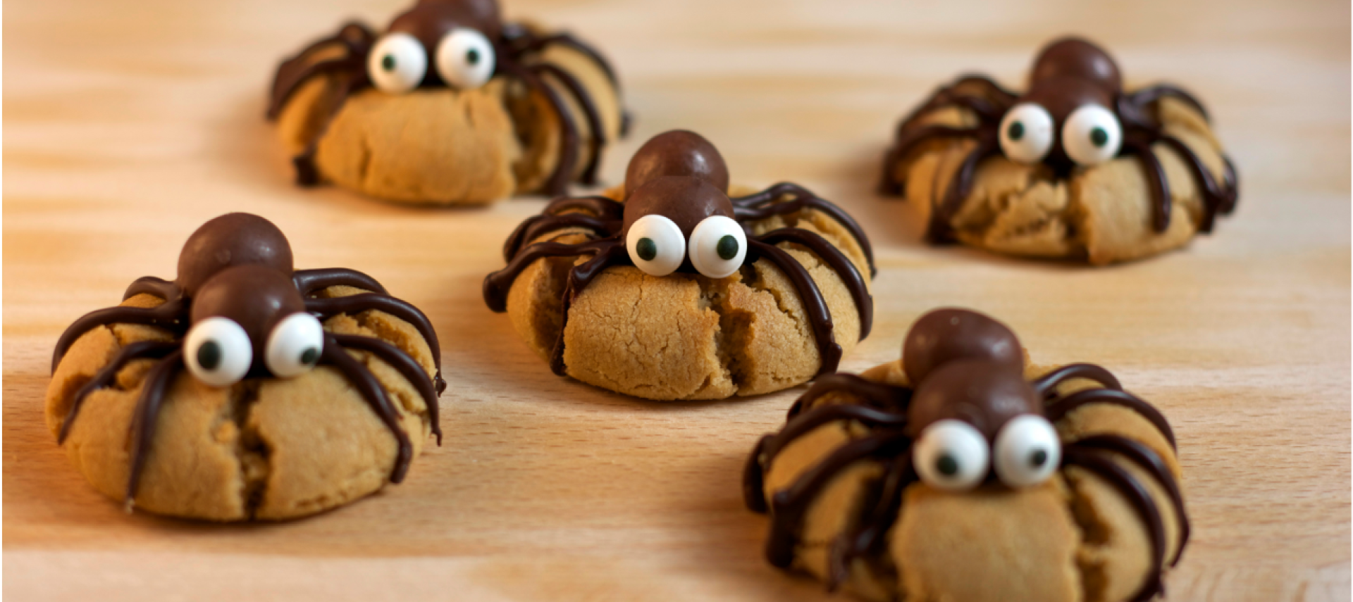 Schokolade im Wasserbad schmelzen, in einen Spritzbeutel geben und ausgehend von der Mitte des Cookies die Spinnenbeine aufzeichnen. Jeweils zwei Malteser oder andere Schokokugeln mittig auf jeden Cookie platzieren. Aus dem Fondant kleine Kügelchen für die Augen formen. Mit der geschmolzenen Schokolade kleine Punkte auf die weißen Fondantkugeln zeichnen. Die Augen mit Zucker- oder essbarem Kleber an den Schokokugeln befestigen. Alternativ kann Wasser, Zuckerguss oder etwas von der Schokolade verwendet werden.