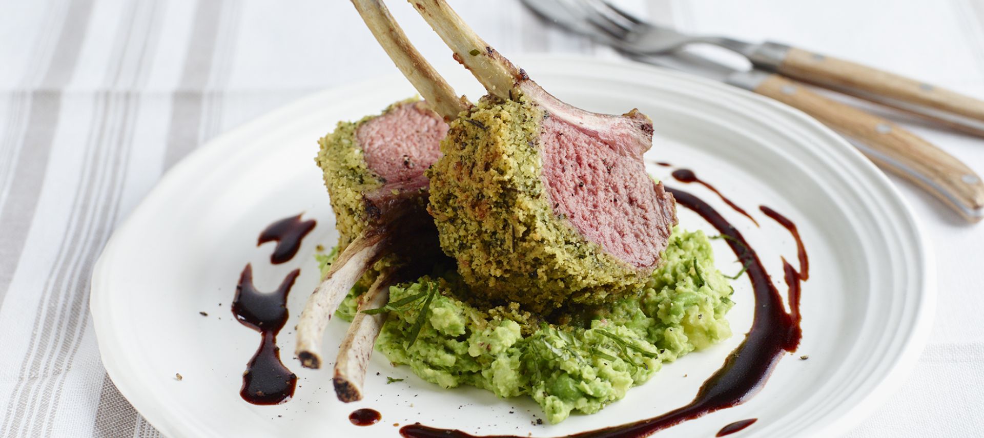 Lammcarrée mit Erbsen-Minz-Stampf