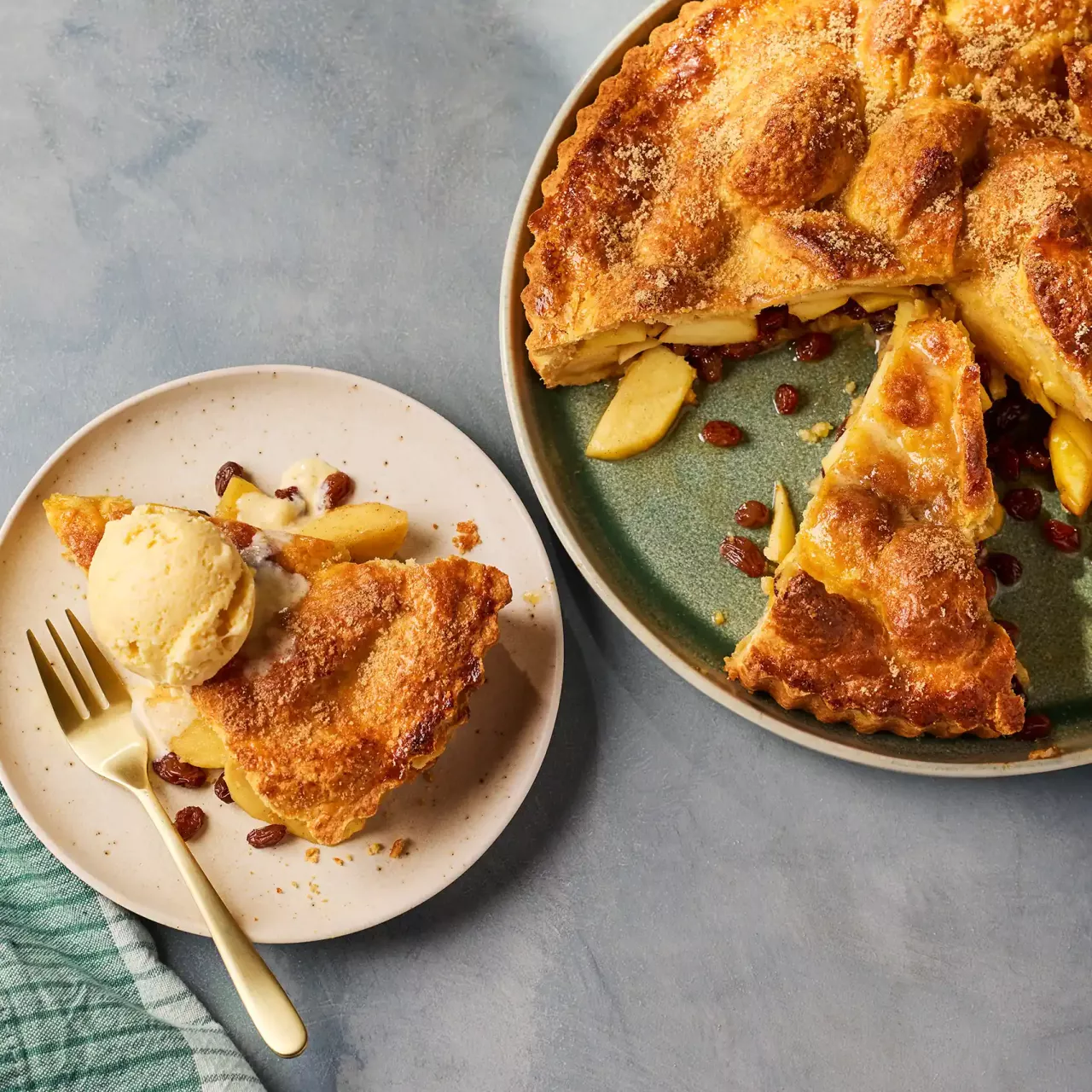 Gewürzte Äpfel, in Whiskey getränkte Früchte und goldener Mürbeteig – serviert mit cremigem Brown-Butter-Eis. Reichhaltig, nostalgisch und rundum wohltuend.