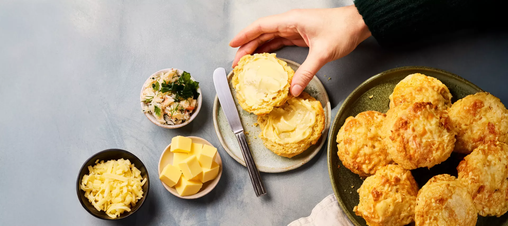 Bring Land und Meer in perfekte Balance – mit leichten, buttrigen Käse-Scones mit Cheddar.